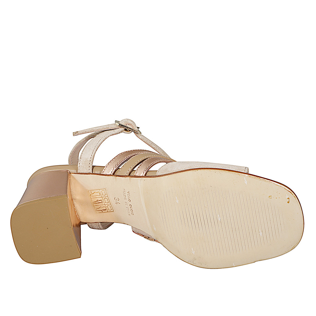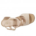 Woman's pump with removable insole and strap, in beige printed leather and suede with wedge heel 6