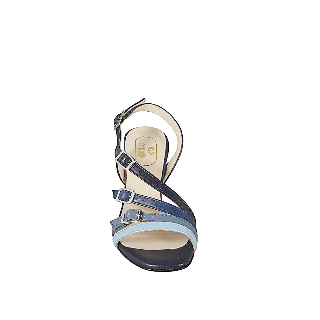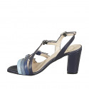Woman's pointy open T-strap shoe in nude leather and printed leather with heel 7
