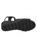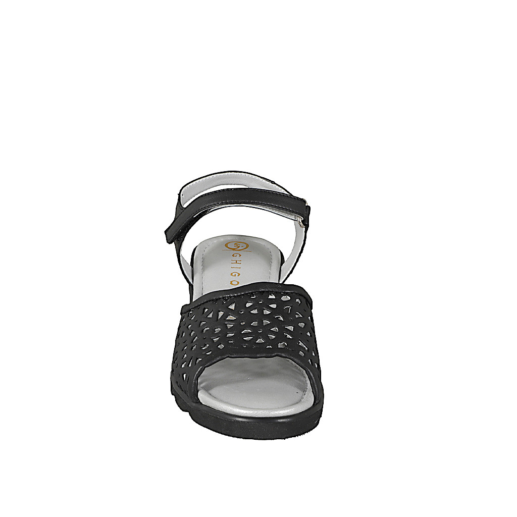 Women's sandal with an memory foam insole and Velcro strap, in pierced black leather, wedge heel 5
