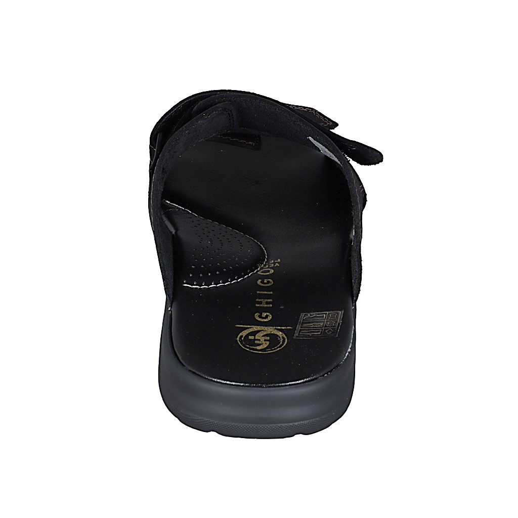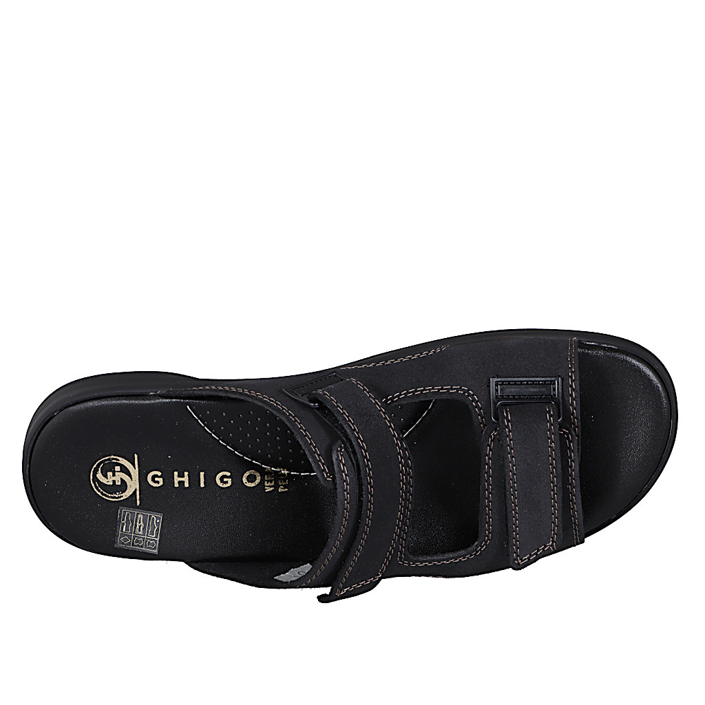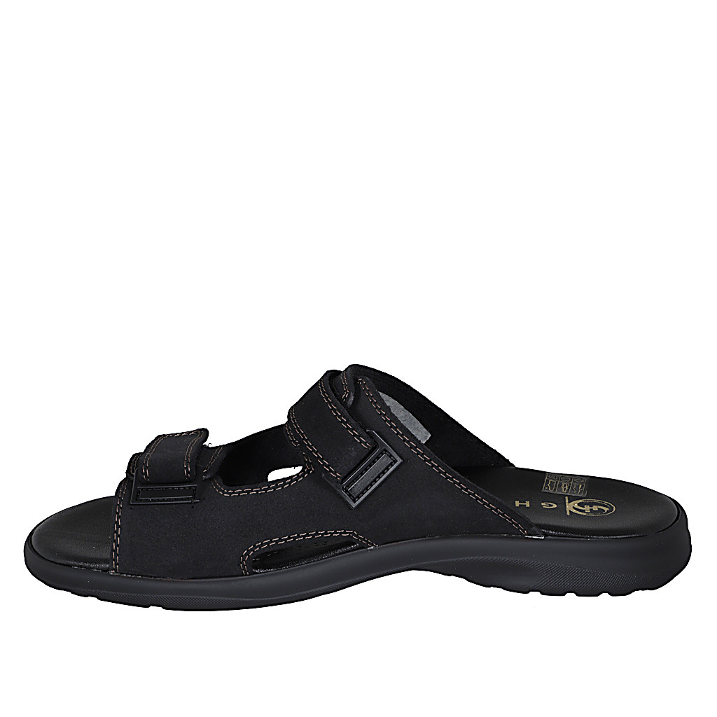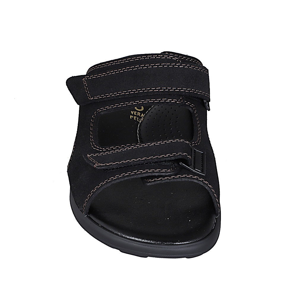 Men's sandal in black leather with velcro strap