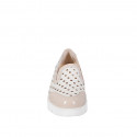 Woman's loafer with wedge heel, elastics and tassels in white and cognac leather and wedge heel 4