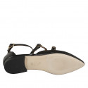 Woman's pointy closed mules in suede with beige denim effect and double nude leather straps, heel 2