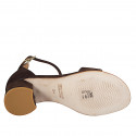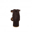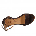 Woman's open shoe with ankle strap and single front strap in brown suede and heel 5