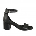 Women's slipper with elastic in beige drawstring fabric with blue floral print heel 2