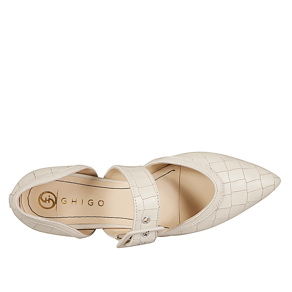 Woman's pointy Slingback with studs in black and light beige leather with heel 6