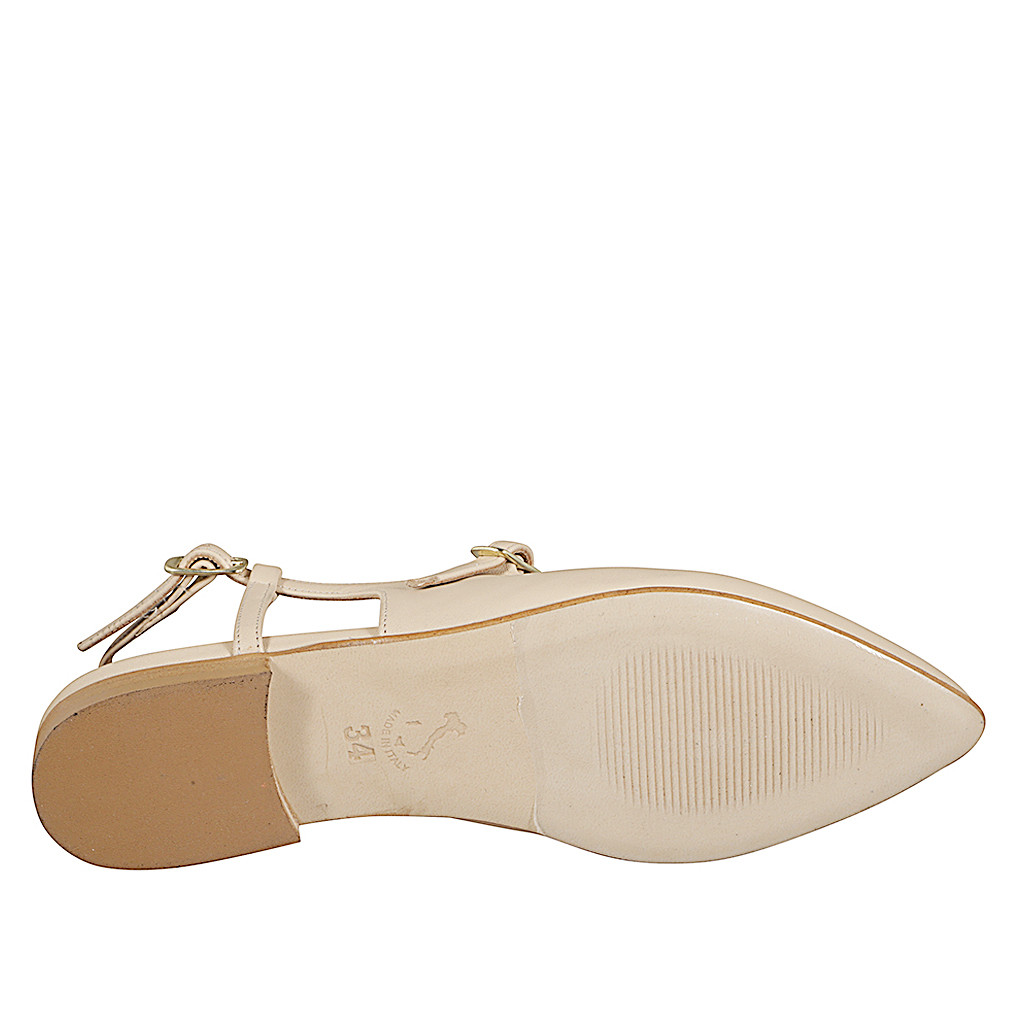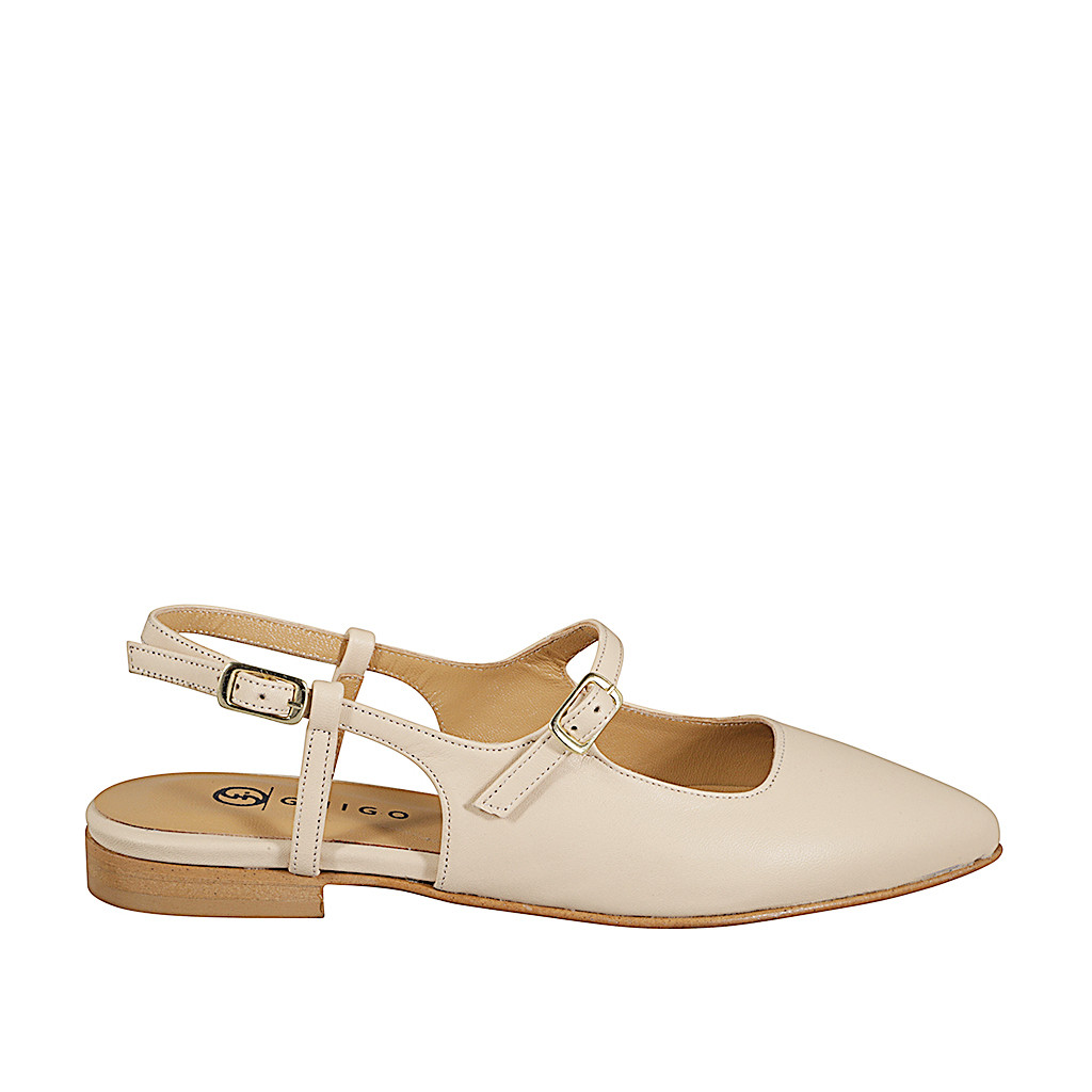 Woman's Slingback flat in laminated platinum leather, heel 2