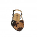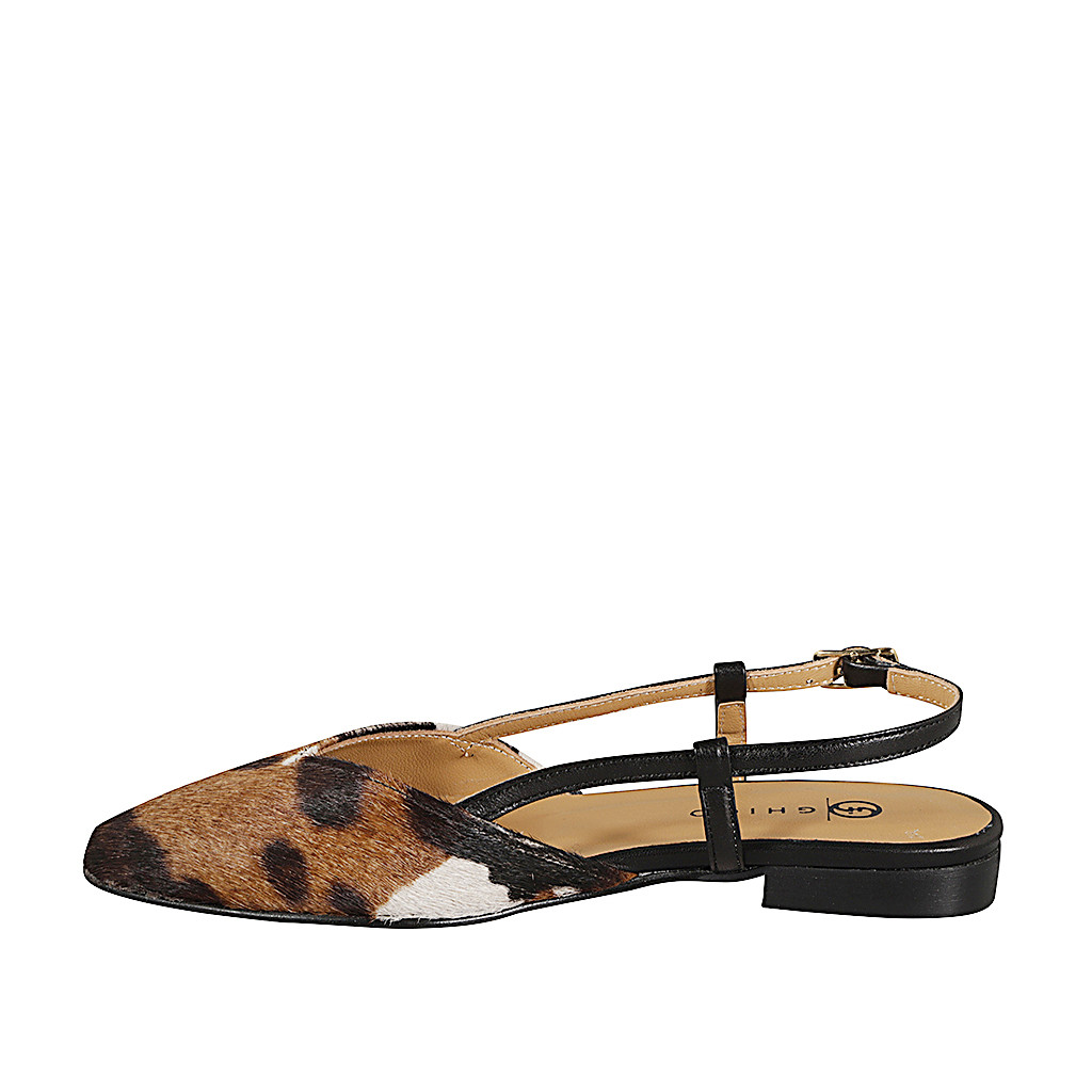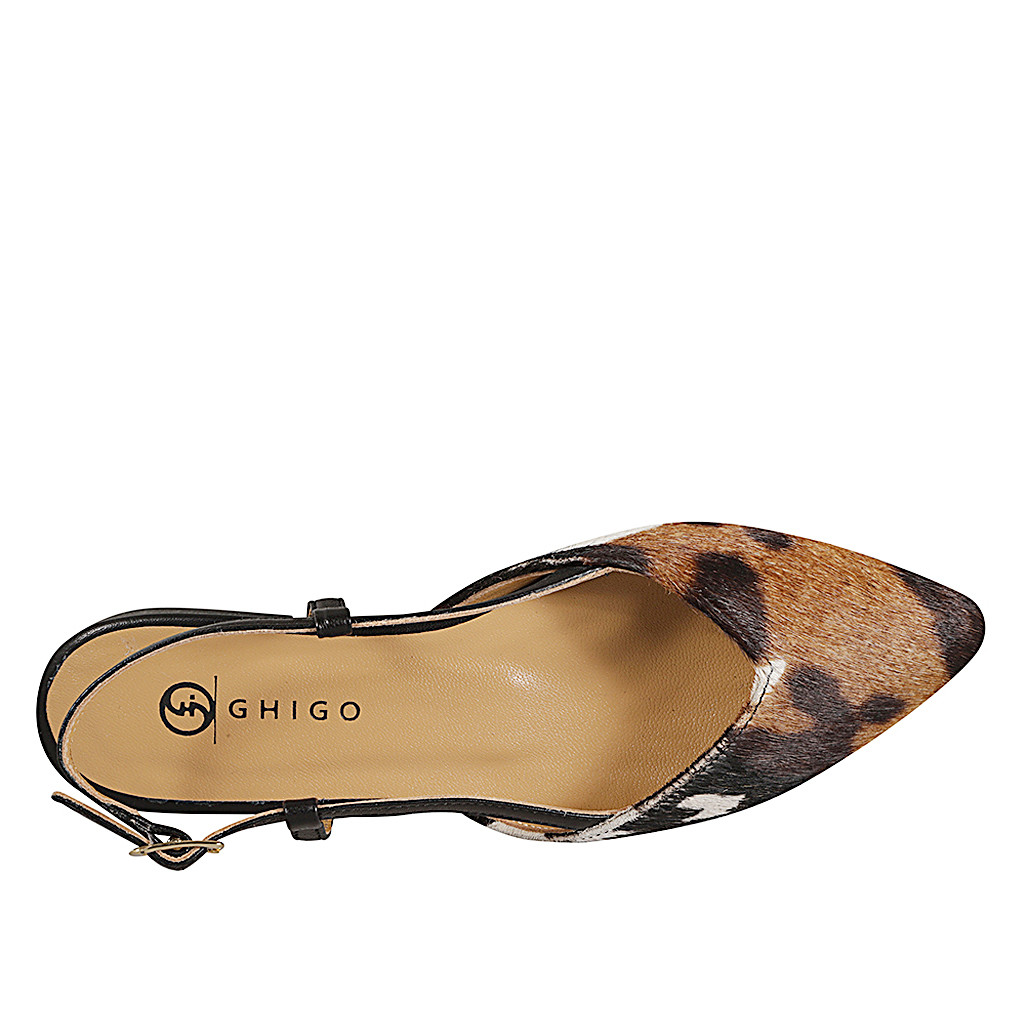 Woman's Slingback flat in spotted black, white and brown haircalf leather and black leather, heel 2