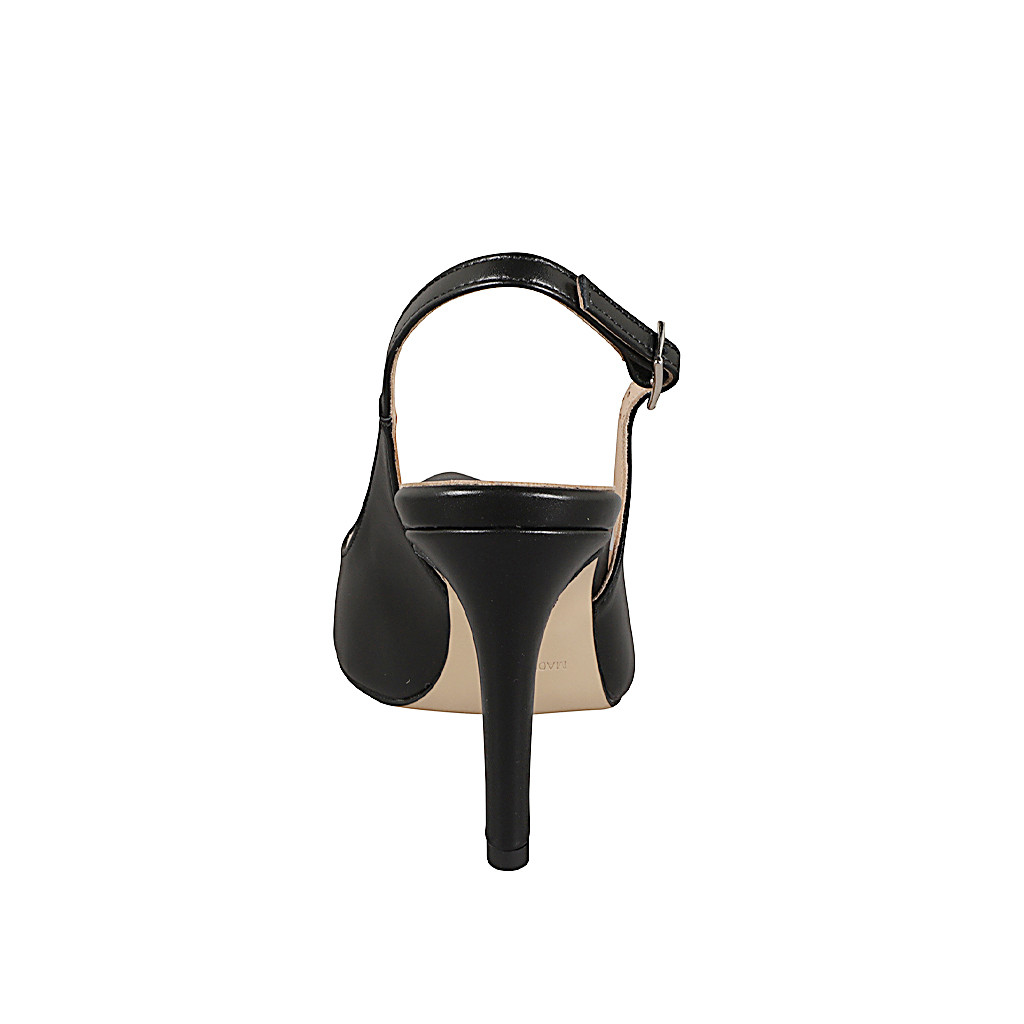 Woman's pointy slingback in black leather heel 9