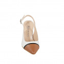 Woman’s pointy slingback in white, cognac brown and black leather with cap toe heel 7