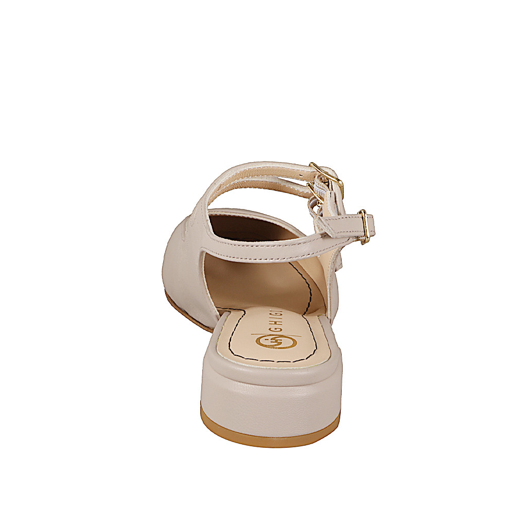 Woman's squared-tip Slingback in Mary Jane style with double straps in nude leather and heel 3