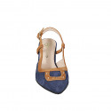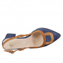 Woman's pump with removable insole and flower decorations in beige pierced suede and platinum...