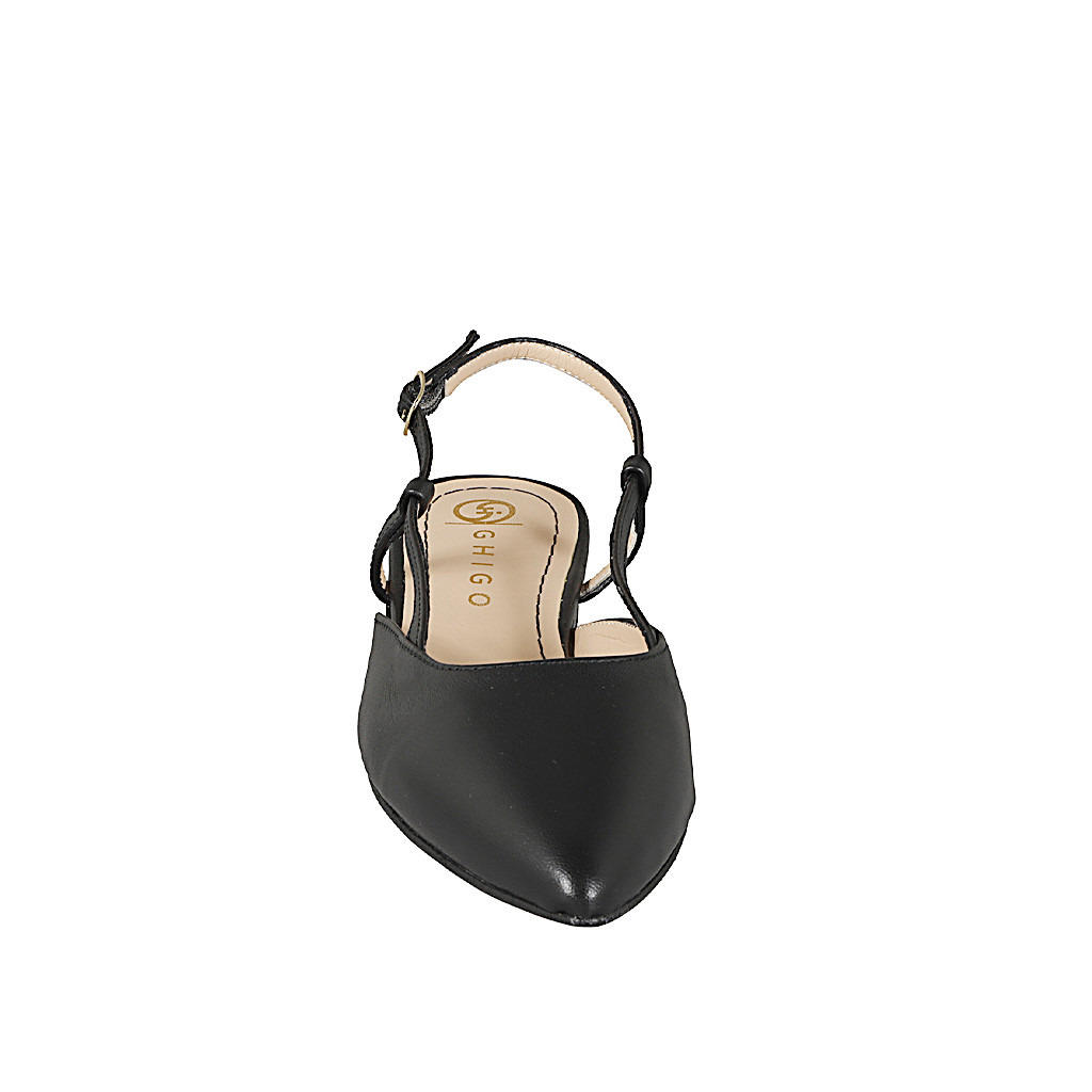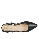Woman's pointed slingback in plain black leather with heel 2