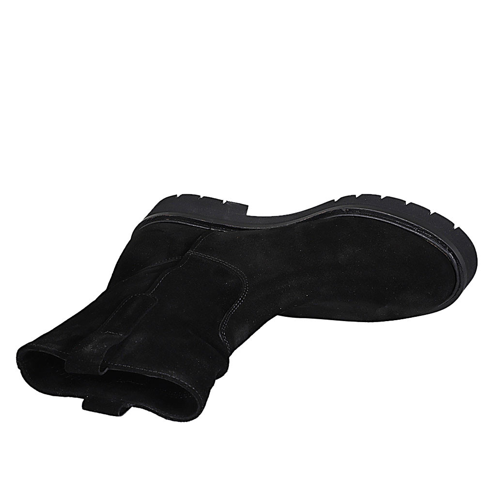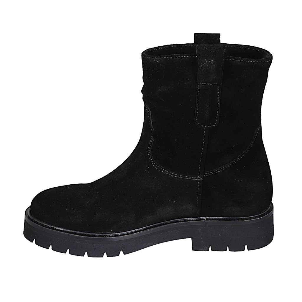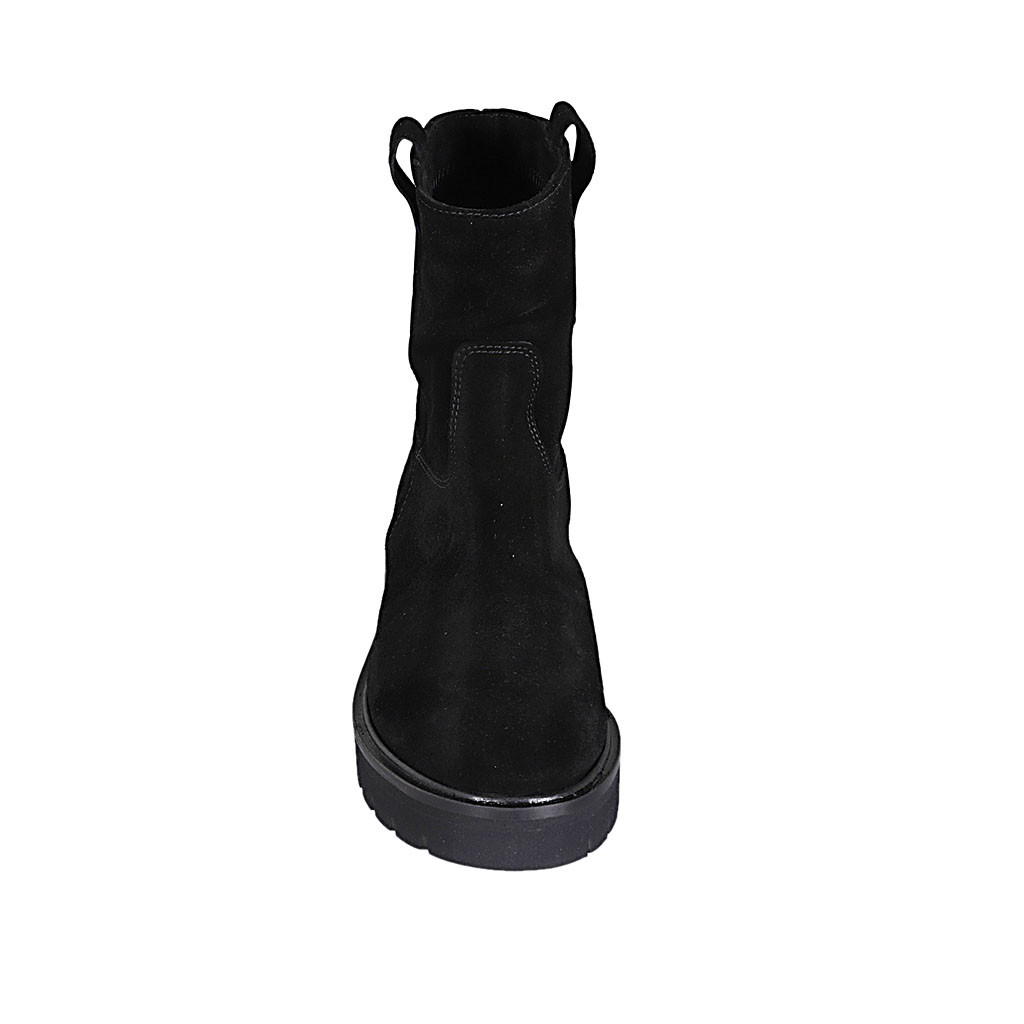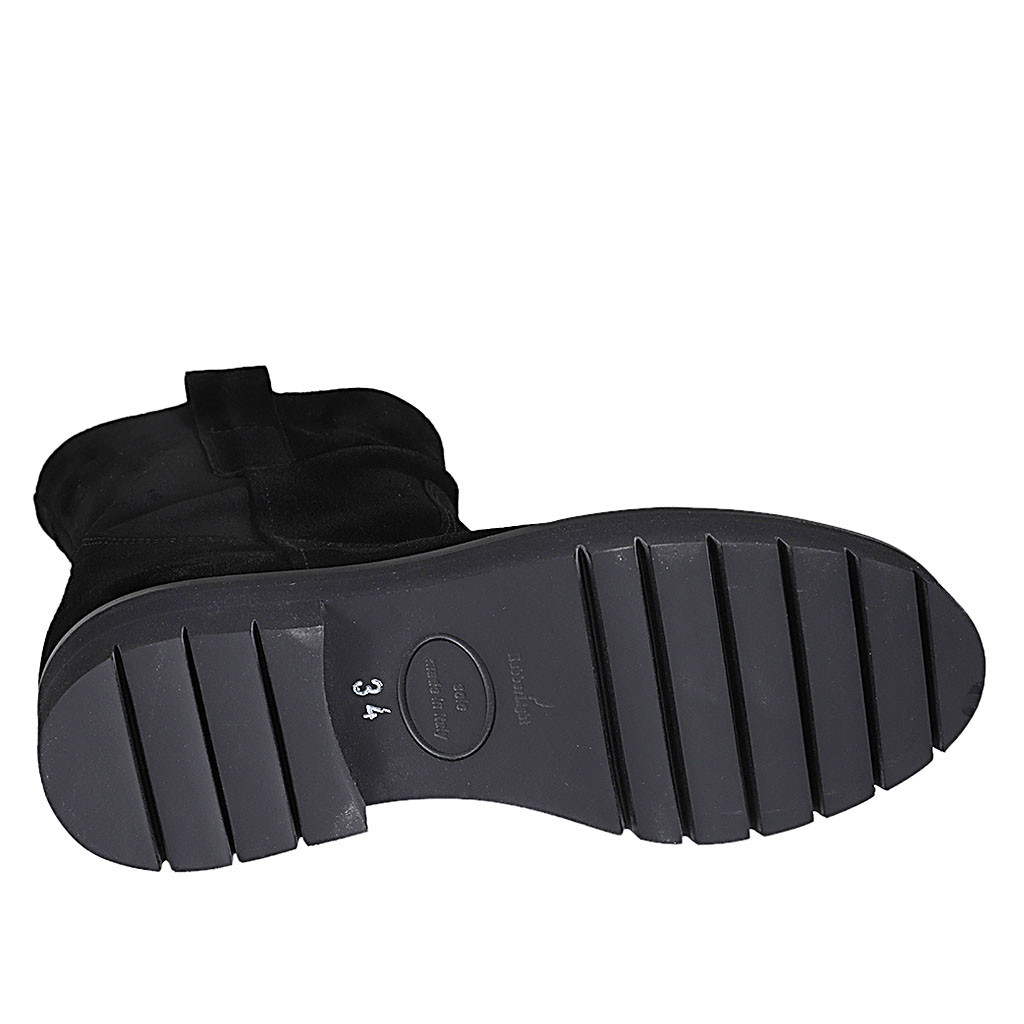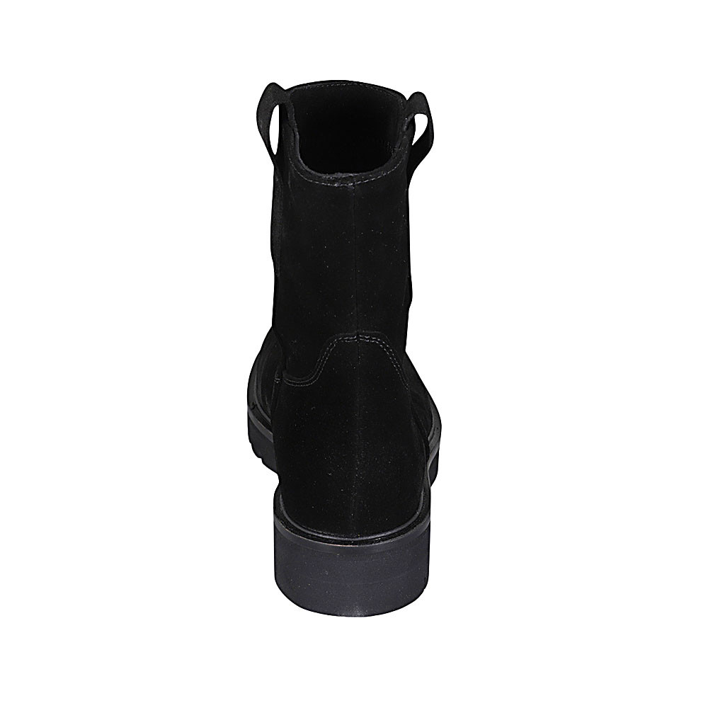 Woman's ankle boot in cognac brown suede and elastic material heel 5