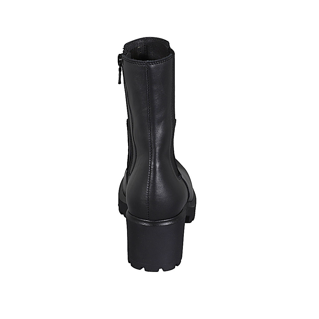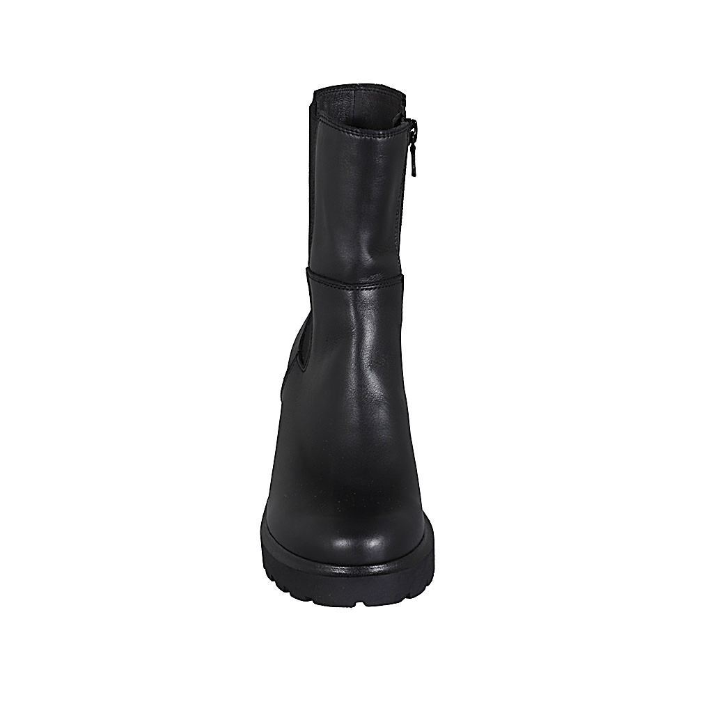 Woman's open shoe with ankle strap in black leather and printed striped pink suede heel 7