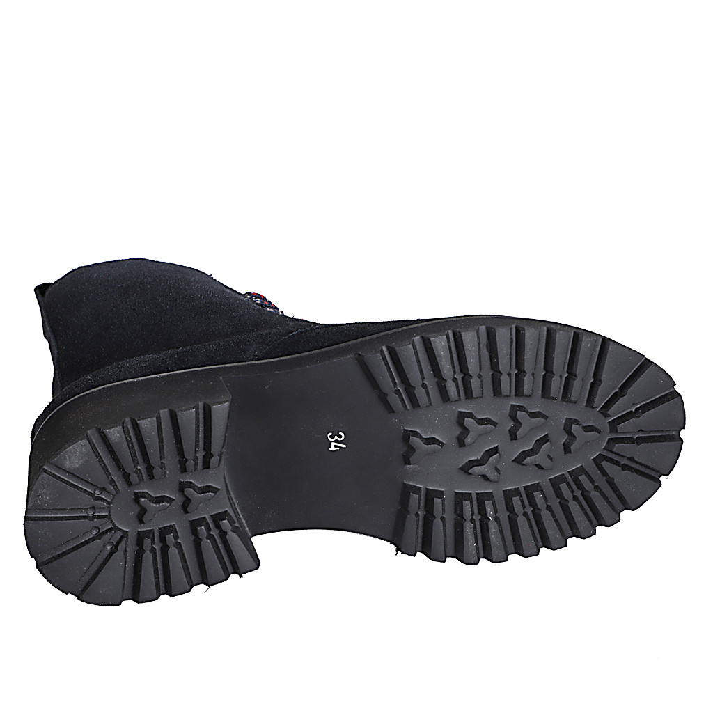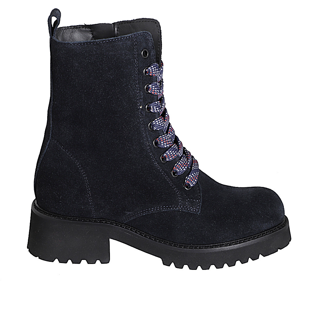 Woman's laced ankle-high boot with multicolored laces and inner zipper in blue suede heel 5