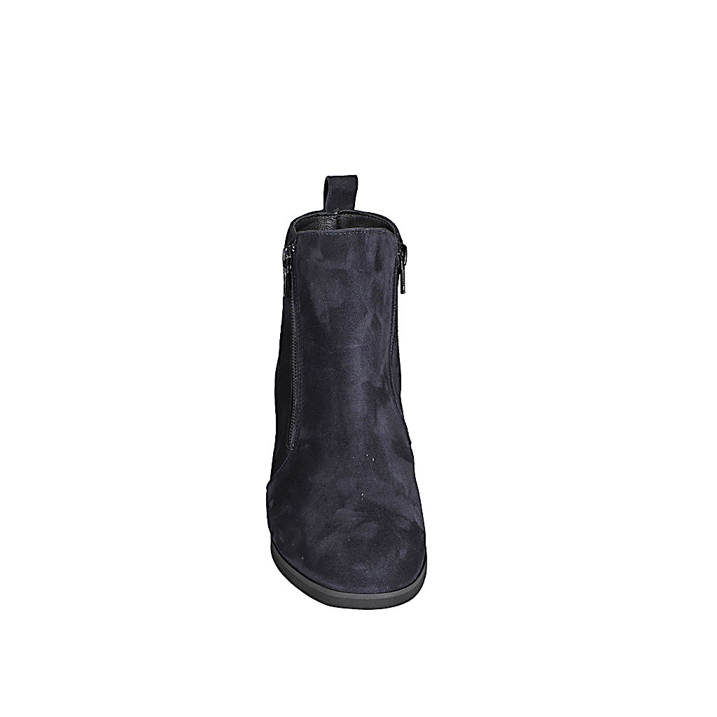 Woman's ankle boot with removable insole and zippers in blue suede heel 5