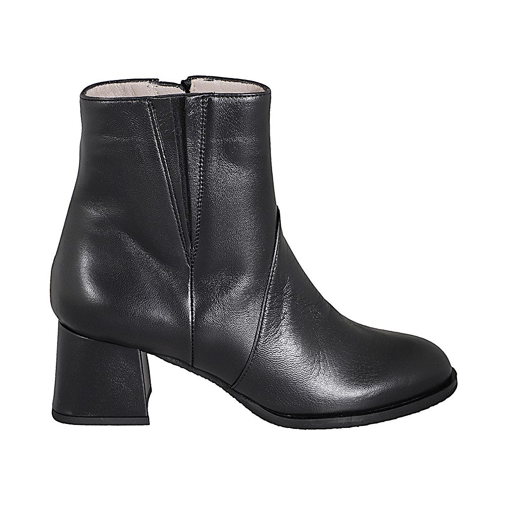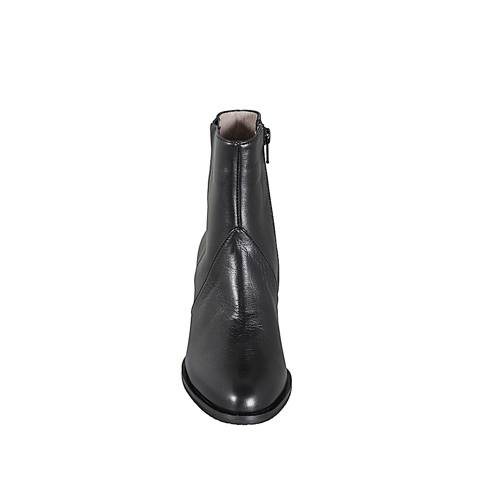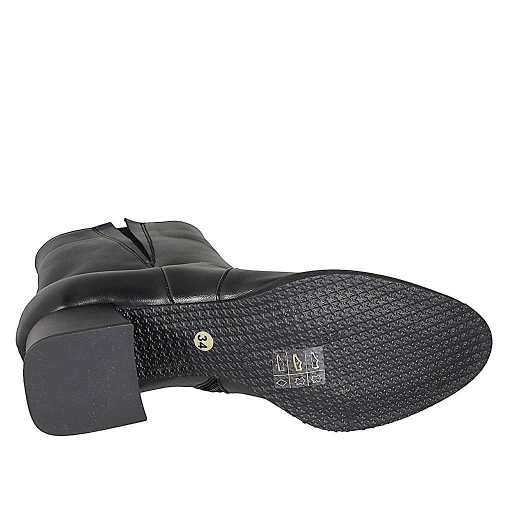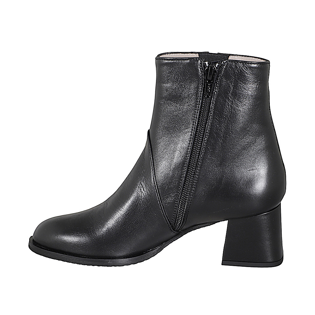 Woman's ankle boot with zipper and elastic band in black leather heel 5