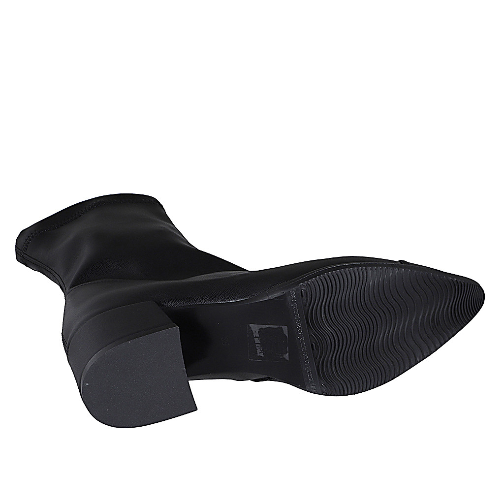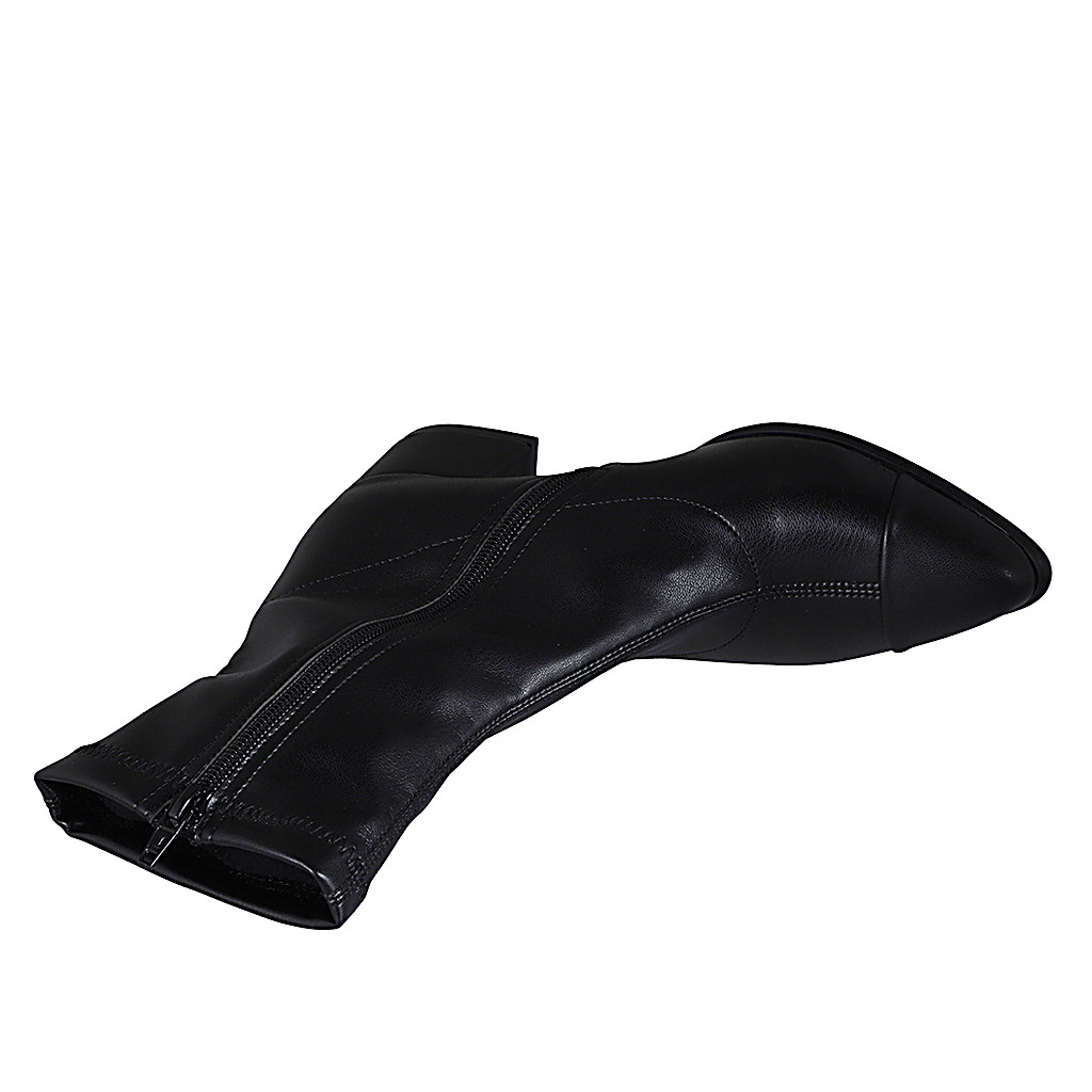 Woman's pointy ankle boot in black elastic leather and leather with zipper and captoe heel 5