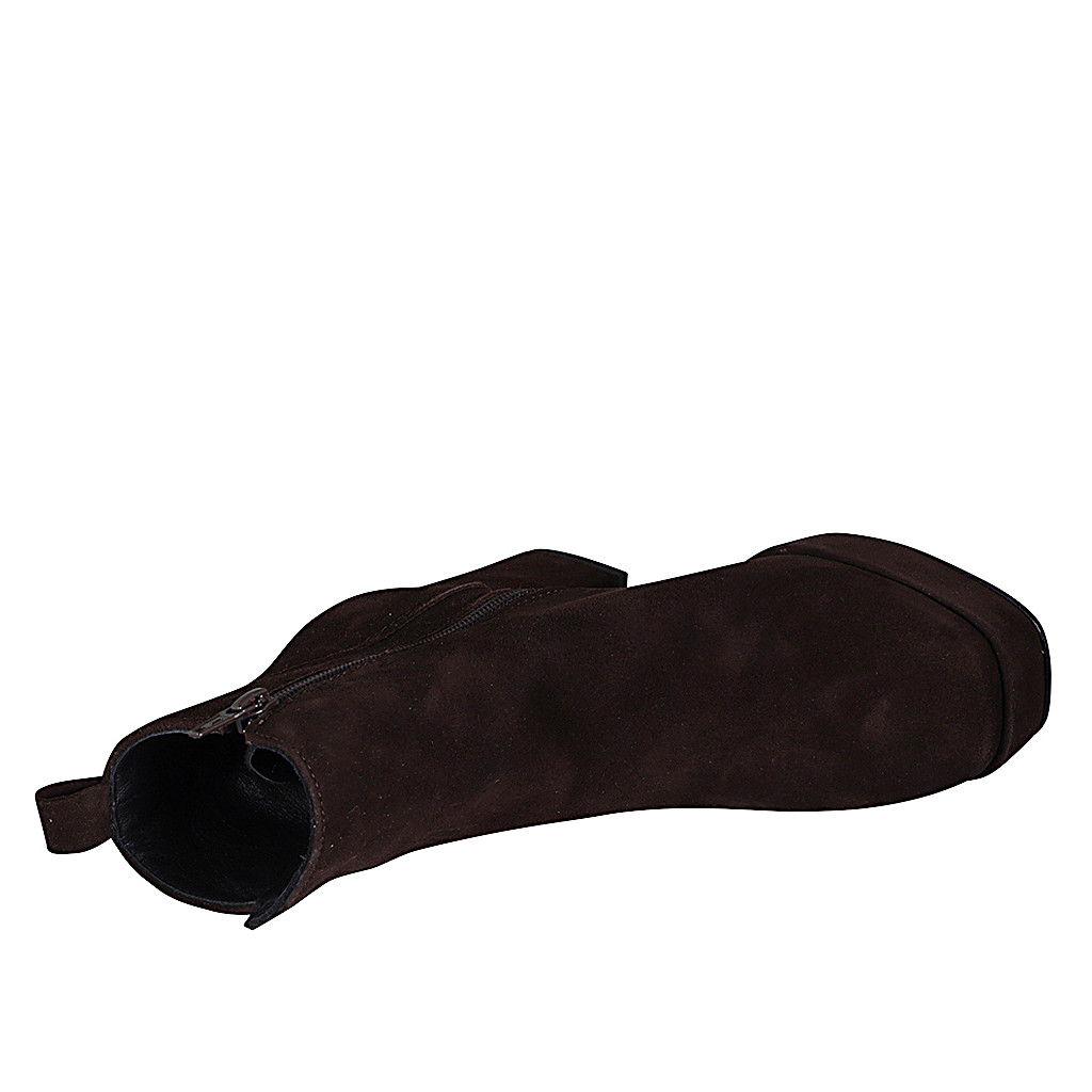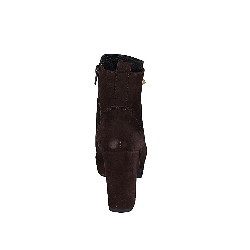 Woman's ankle boot with studs and zipper in dark brown suede heel 9