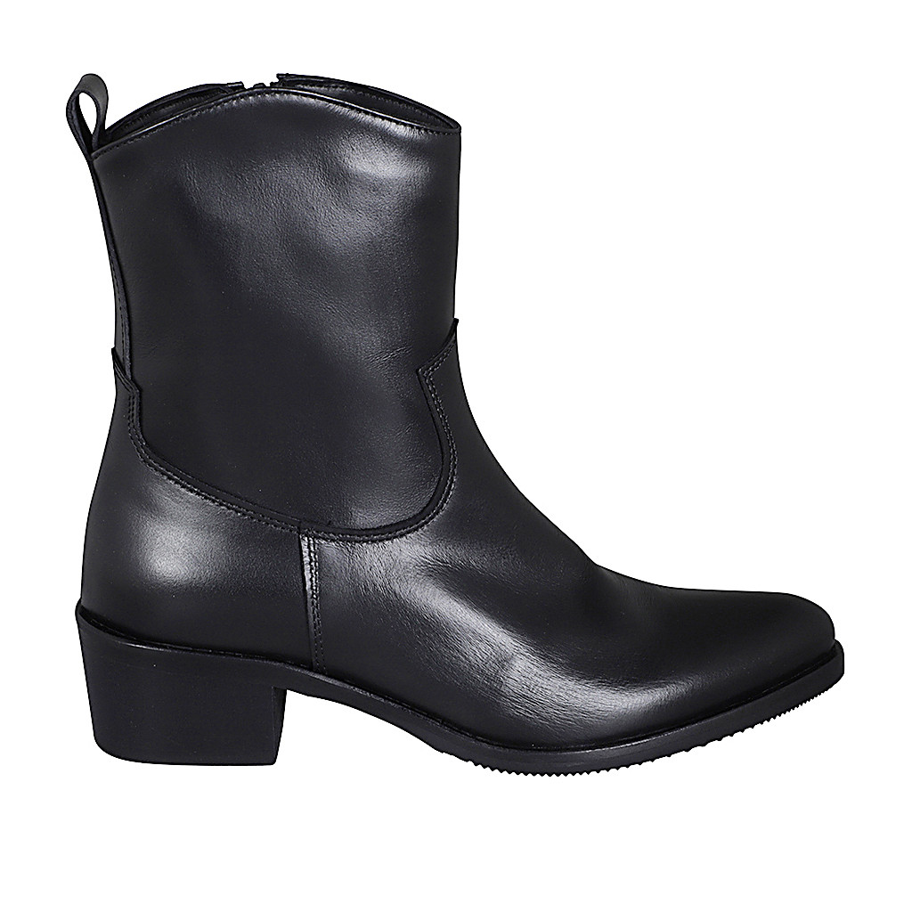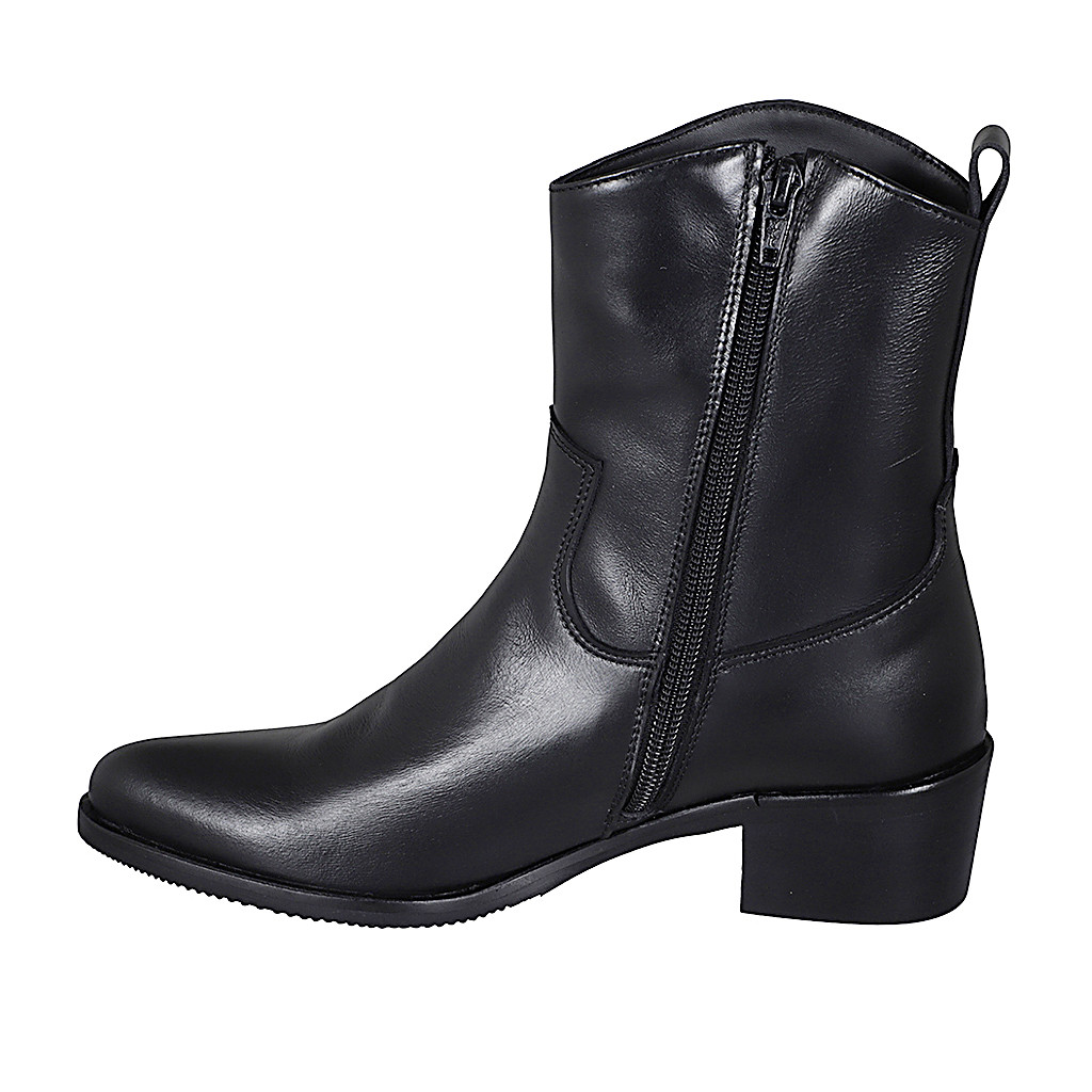 Woman's Texan ankle boot with zipper in black leather with heel 4