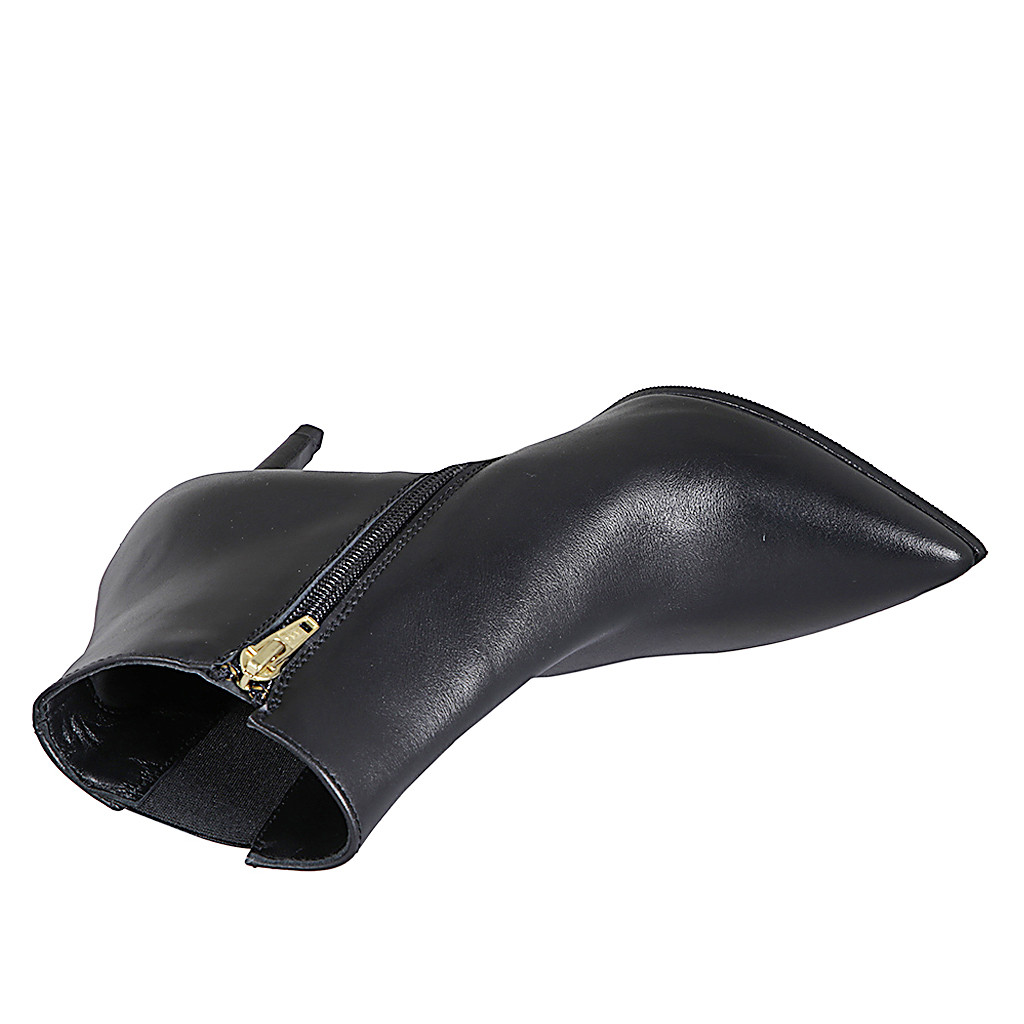 Woman's laced shoe in white, black and laminated bronze leather with studs and removable insole...