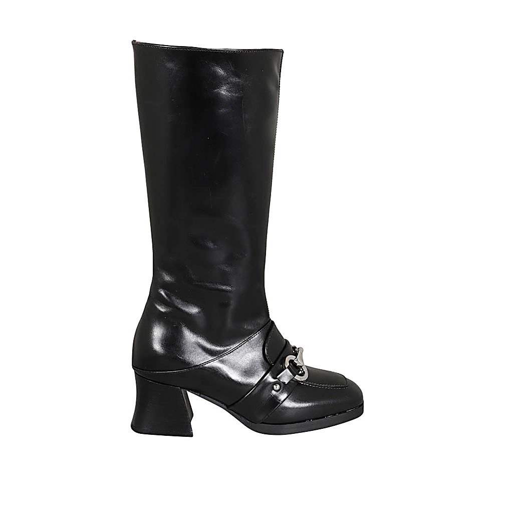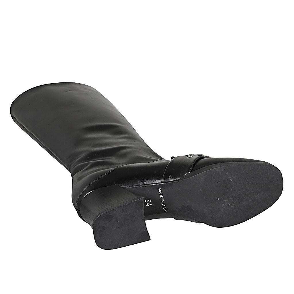 Woman's boot in black leather with zipper and accessory heel 5