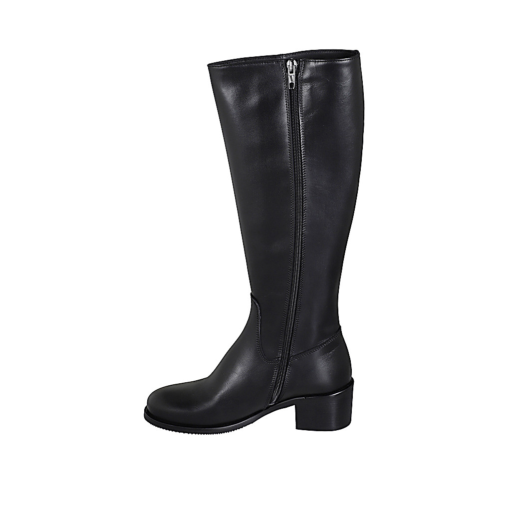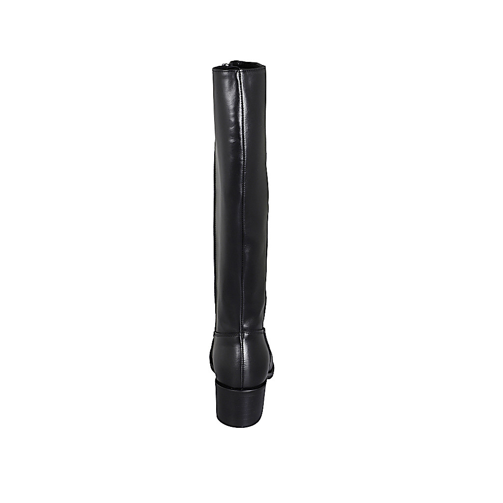 Woman's open shoe with strap in black leather and black and white raffia heel 7