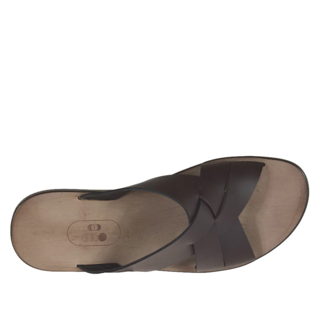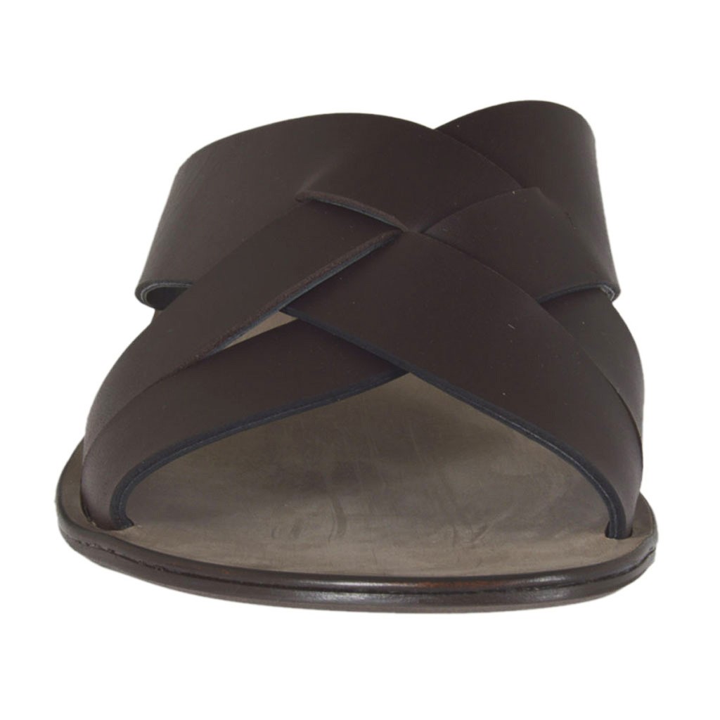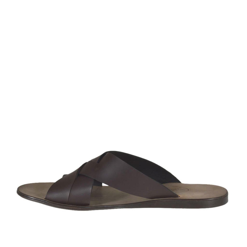 Men's slipper, in dark brown leather, rubber sole, leather lining. Available in large sizes.